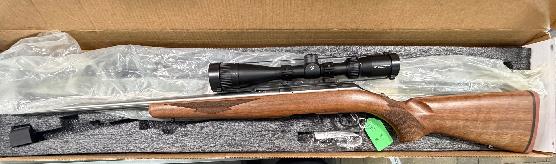 Preowned Ruger 10/22 with Stainless Barrel. This one is in Like New Condition and comes with a Vortex Crossfire II Scope and original box.
