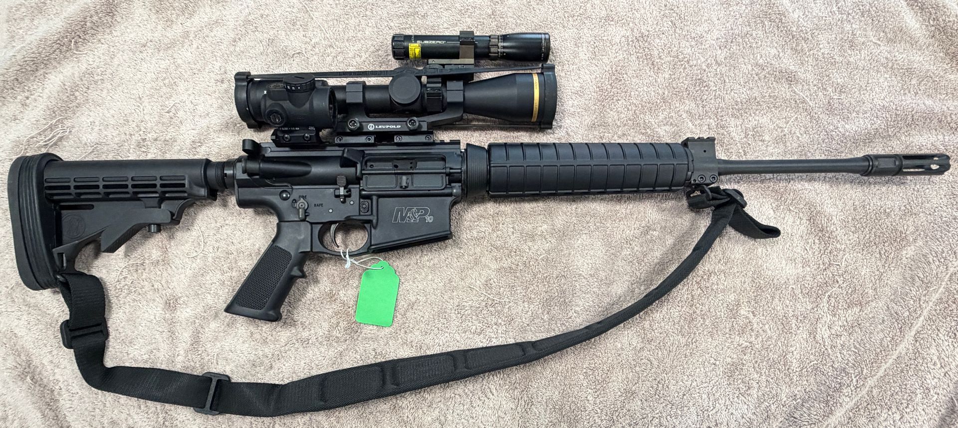 Preowned Smith and Wesson M&P 10 308 AR in LIKE NEW Condition. this one comes with a Trijicon VR06 2-12x42 Scope ($2000 value), Trijicon MRO Red Dot ($600 Value), and a ND3 Sub Zero Green Laser. Comes with 5 mags and original box. THIS IS A GREAT DEAL!