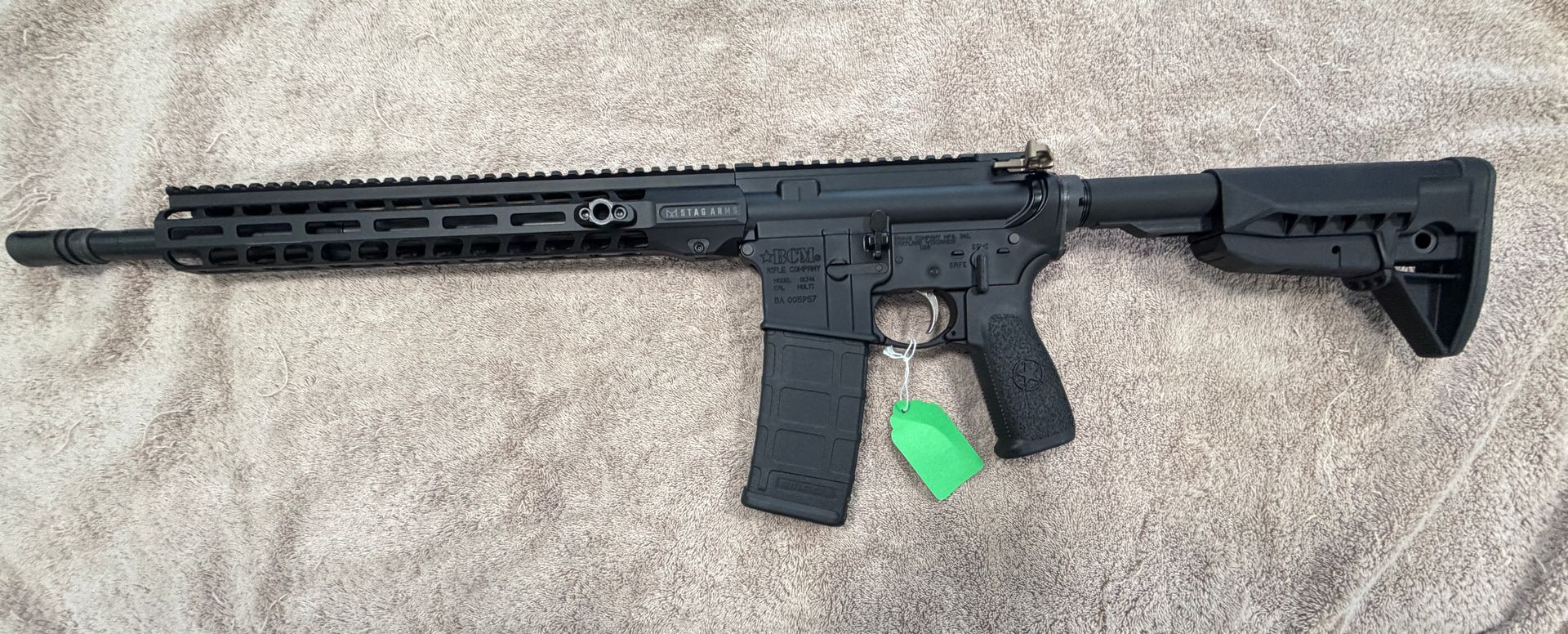 Preowned BCM BCM4 in Like New Condition. This one has a Stag Upper, Rise Armamnet Bolt Carrier Group, and one mag. This one is a great deal and appears to be unfired!