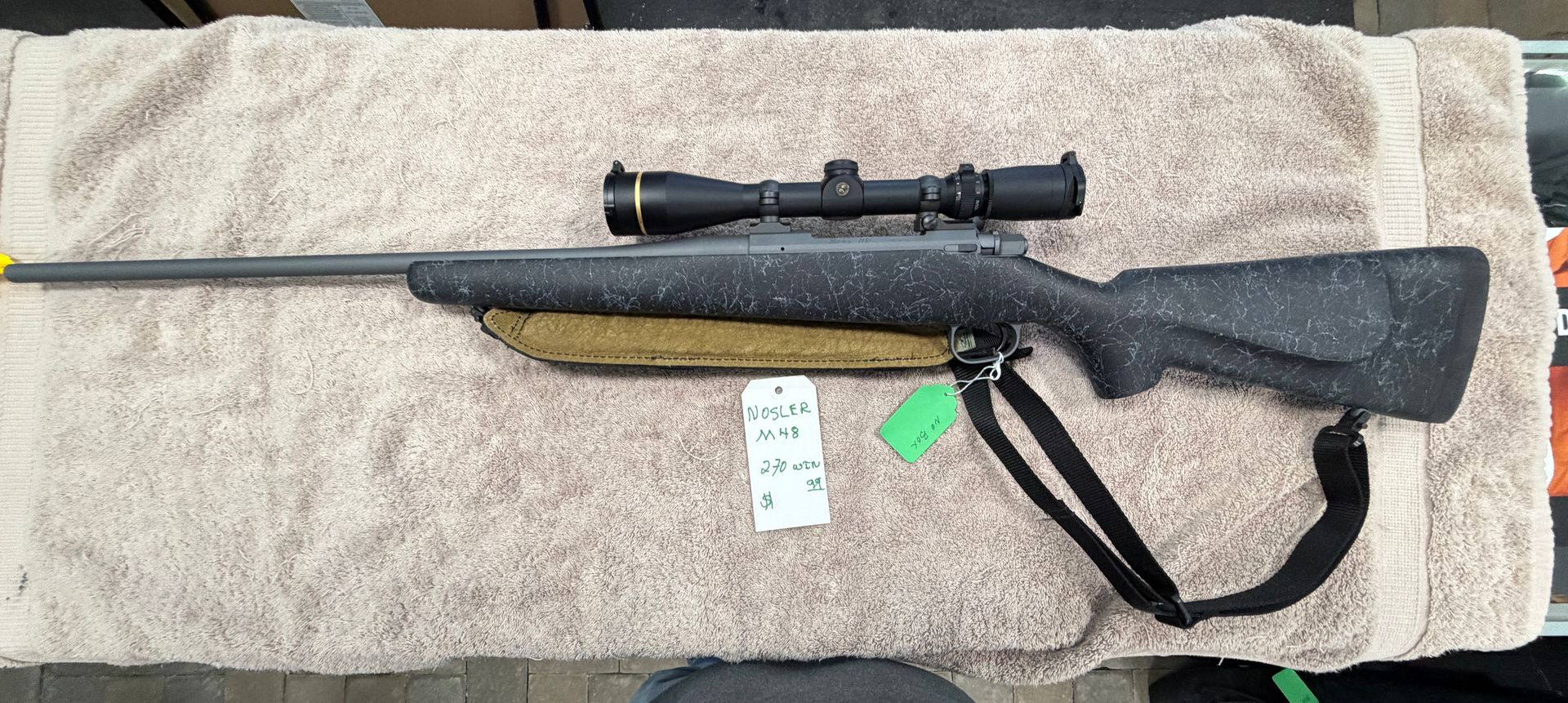 Preowned Nosler M48 Trophy Grade Rifle 270 in Like New Condition. Comes with a Leupold VX3 Scope.