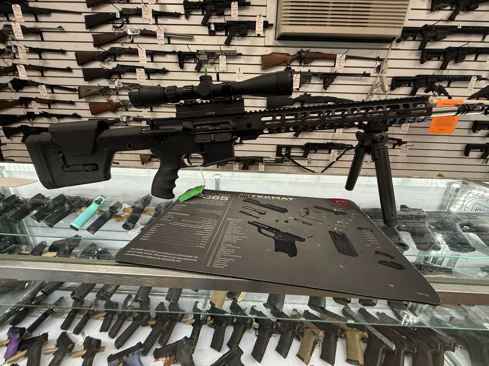 Preowned Kel Tec Sub 2k 9MM. This one is OD Green and takes Glock mags.