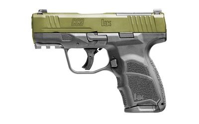 Heckler & Koch, CC9, Semi-automatic, Striker Fired, Polymer Frame Pistol, Sub-Compact, 9MM, 3.32" Barrel, Cerakote Finish, Black Frame, Cerakote Bazooka Green Slide, Front Night Sight, 12 Rounds, (1)-12 Round and (1)-10 Round Magazine