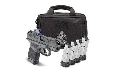 Springfield, Hellcat OSP, Semi-automatic, Striker Fired, Polymer Frame Pistol, Sub-Compact, 380 ACP, 3" Hammer Forged Barrel, Melonite Finish, Black, Textured Grip, Tritium Front Sight, Tactical Rack Rear Sight, Viridian Green Dot Optic, 4 Magazines, (3)-13 Round and (1)-11 Rounds, Includes Range Bag