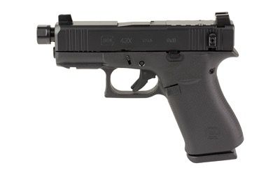 GLOCK, 43X Hush Puppy, Semi-automatic, Striker Fired, Polymer Frame Pistol, Sub-Compact, 3.92 Threaded Barrel, 1/2X28 Thread Pitch, Black Cerakote by Shark Coast Tactical, Slide Lock Lever, Suppressor Height Sights, 10 Rounds